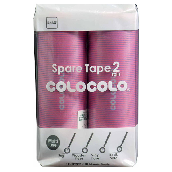 カラフルでキュートな、コロコロ コロフルシリーズのスペアテープ2巻入りです。別売りの本体・ケースに合わせたカラフルな色展開です。強弱の粘着加工によりフローリングからカーペットまで、部屋中の床をお掃除できます。
