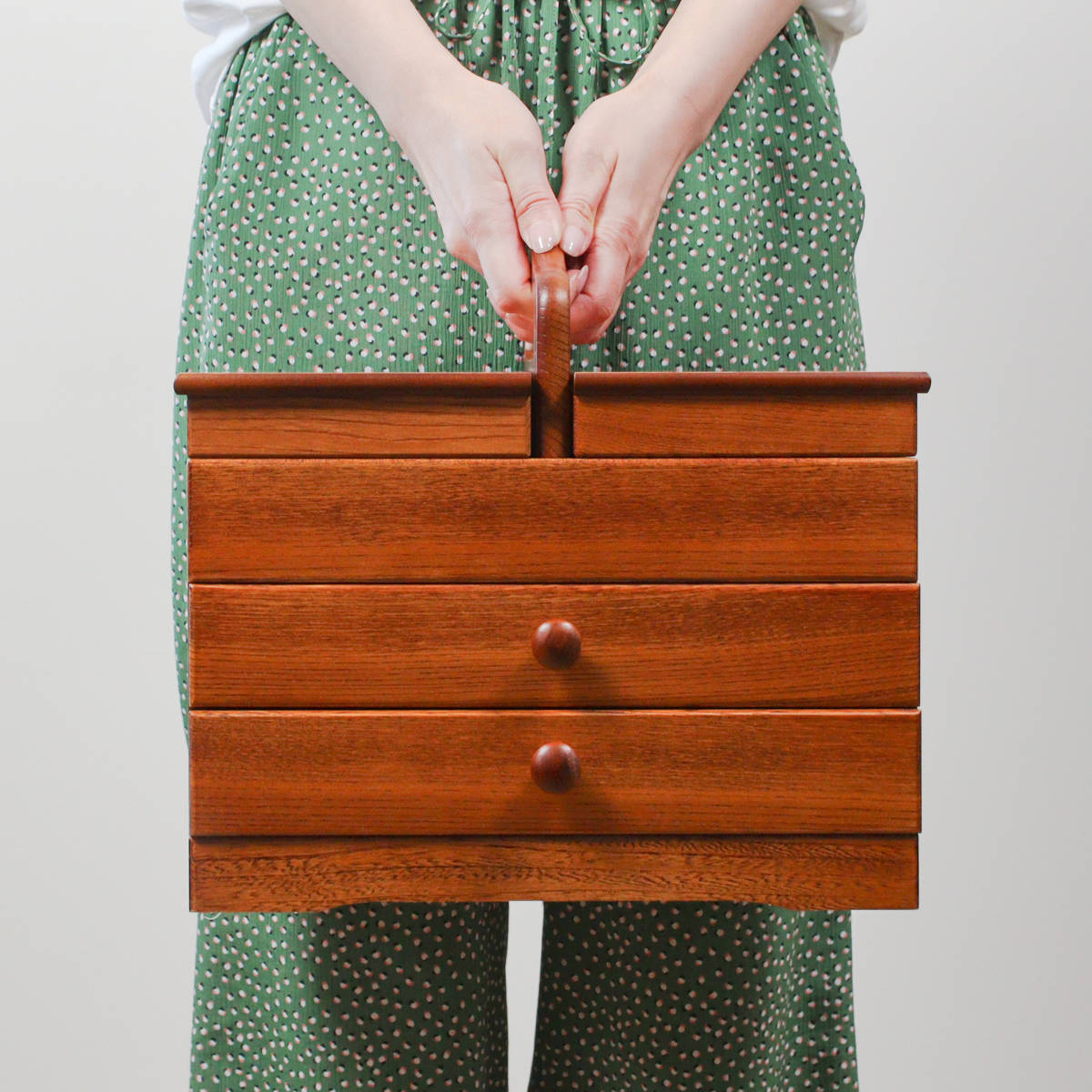 ソーイングボックス 木製 引出し付 あおい 幅32.5cm ( 日本製 天然木 裁縫 くけ棒 裁縫箱 針箱 裁縫道具 収納 和風 引き出し 2段 引出し 小物入れ 手芸 洋裁 ソーイングケース お裁縫 和裁 小物 小物収納 小物ケース 薬箱 救急箱 )