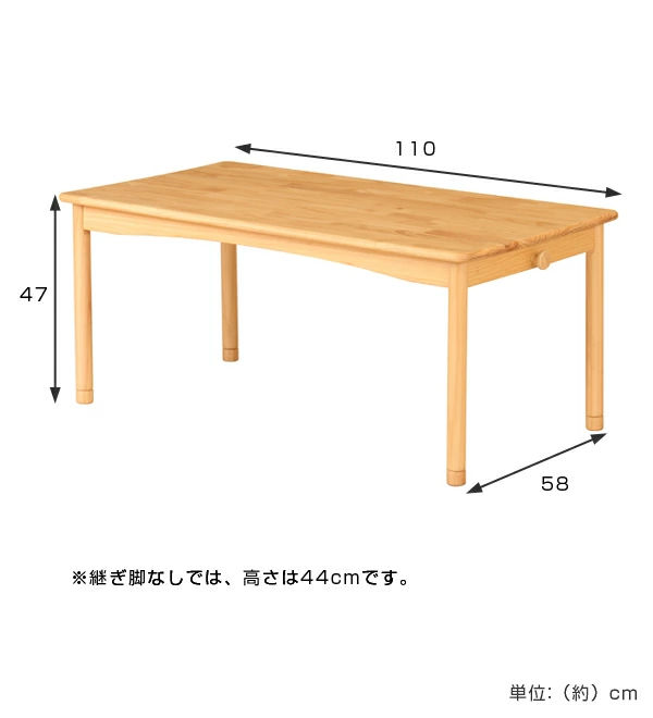 机の高さは44cm、47cmの2段階調節可能です。また、ボルト式継ぎ脚構造で、簡単に継ぎ脚ができます。