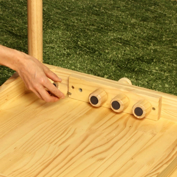 お絵かきを楽しむ時間、お勉強をする時間・・・飽きのこないシンプルでナチュラルなデザイン、お子さまのはじめてのテーブルにおすすめです。天板両サイドにフックがついているので鞄などつりさげられます。
