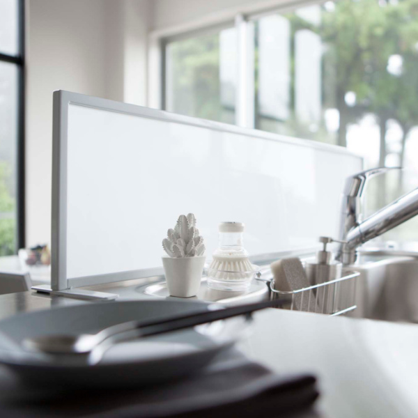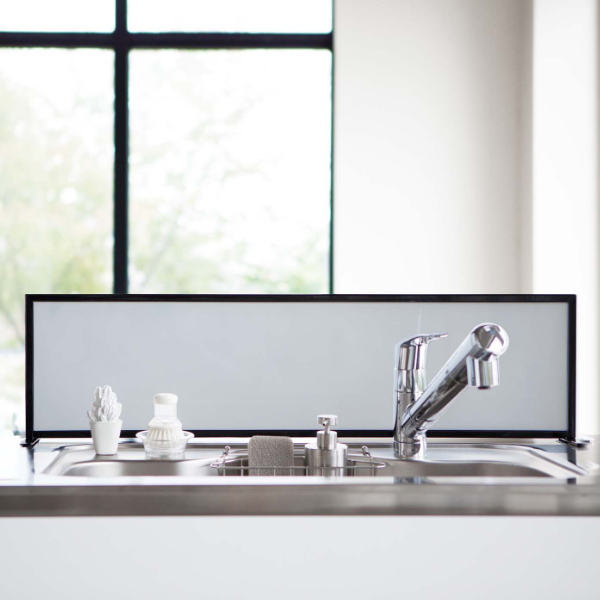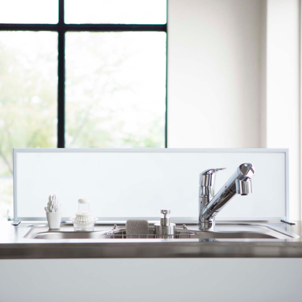 調理中や食器洗い時の水はね・洗剤の飛び散りを防止していつでも清潔なキッチンを保つことができます。パネルはアクリル樹脂製なので水滴や汚れが気になったらサッと拭いてお手入れできます。