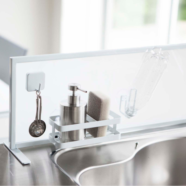 シンク奥ラック シンク 水はね防止スクリーン tower タワー 山崎実業 3496 3497 ( 水はねガード シンク用仕切り オープンキッチン 目隠しプレート 飛び散り防止 キッチンガード アクリル製パネル 対面キッチン ) 【 ホワイト 】