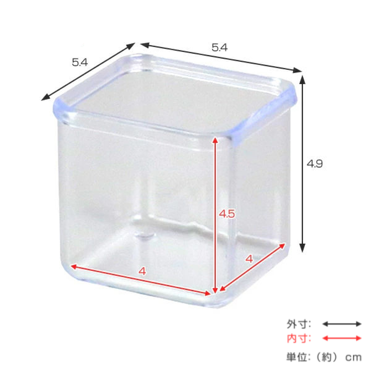 | サイズ | 外寸:約 幅5.4×奥行5.4×高さ4.9(cm) 内寸:約 幅4×奥行4×高さ4.5(cm) |