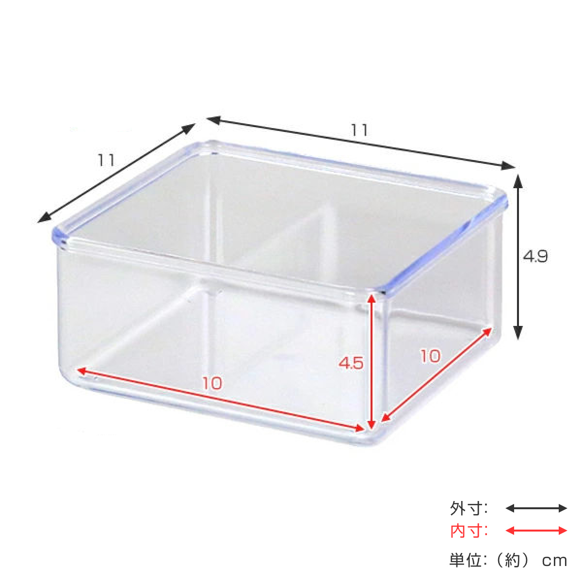 | サイズ | 外寸:約 幅11×奥行11×高さ4.9(cm) 内寸:約 幅10×奥行10×高さ4.5(cm) |