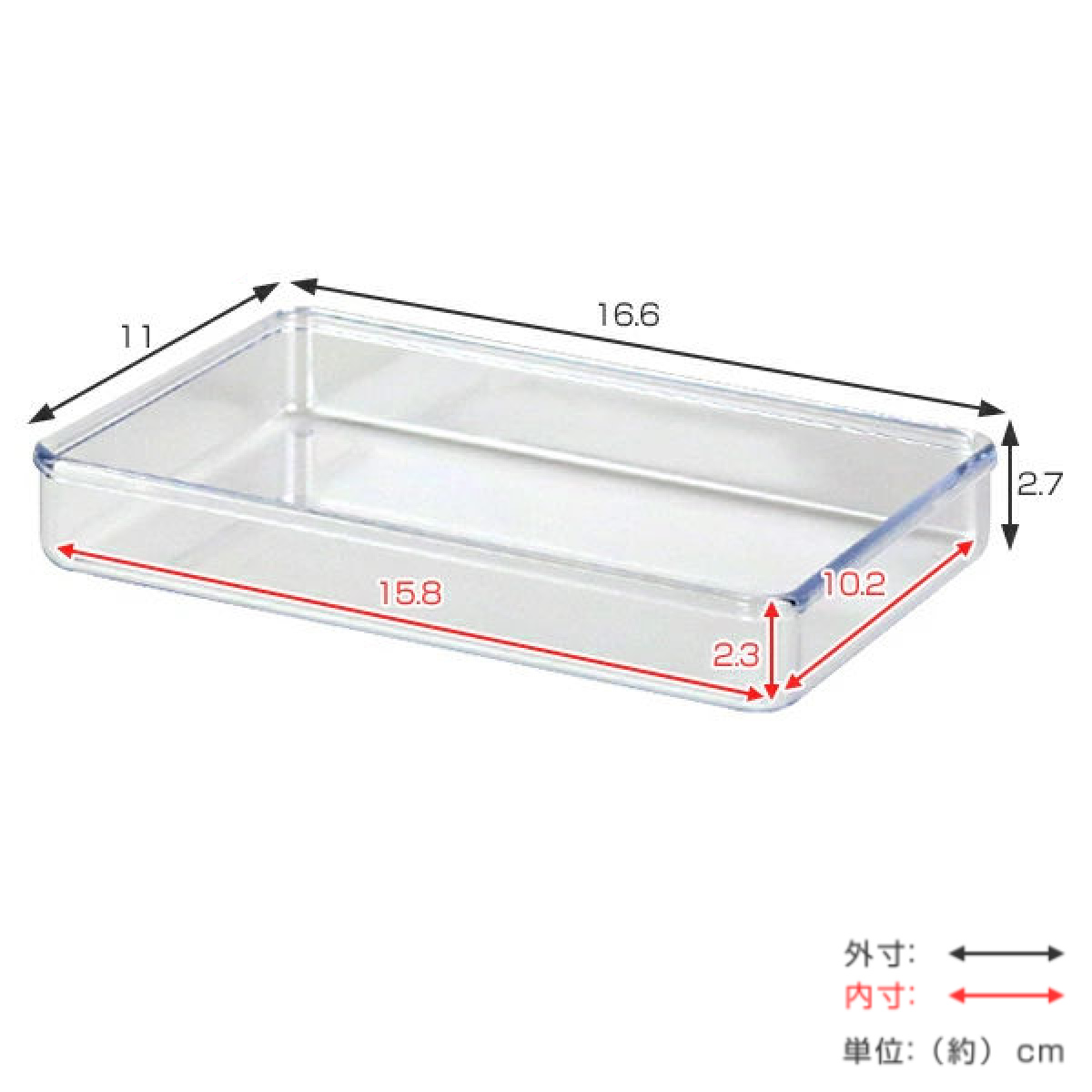 | サイズ | 外寸:約 幅16.6×奥行11×高さ2.7(cm) 内寸:約 幅15.8×奥行10.2×高さ2.3(cm) |