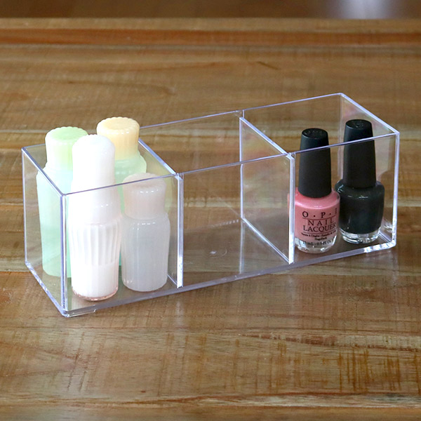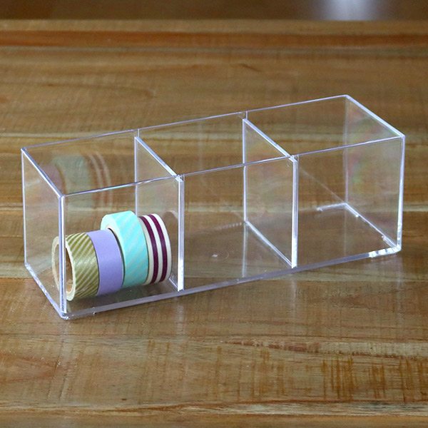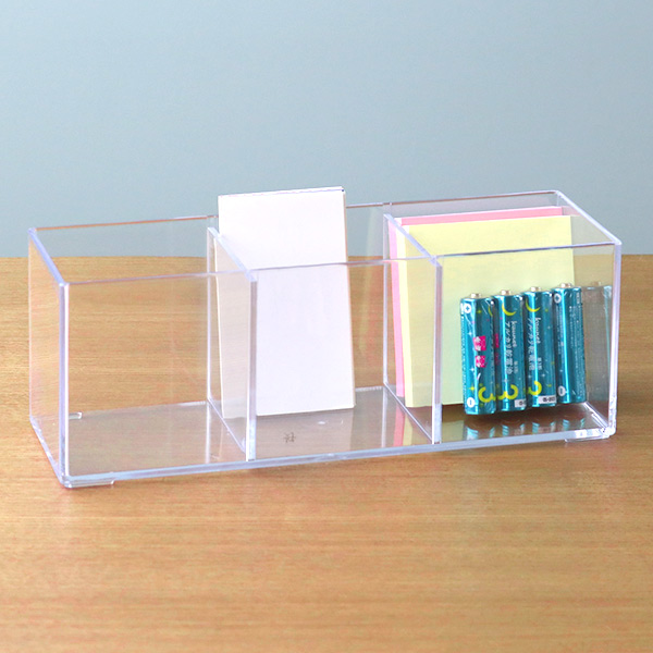 | サイズ | 外寸:約 幅24×奥行8.3×高さ8.6(cm) 内寸:約 幅23×奥行7.5×高さ8(cm) 一区切り分の内寸:約 幅7.5×奥行7.5×高さ7.5(cm) |