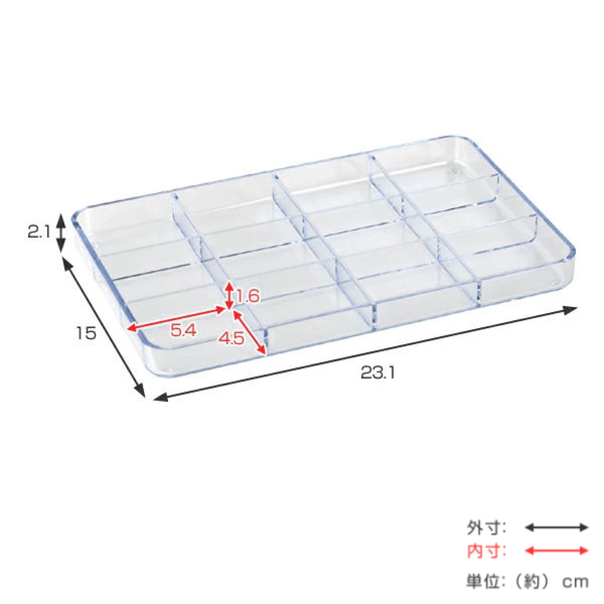 ![]() 仕切り付きトレー 幅23.1×奥行15×高さ2.1(cm) |