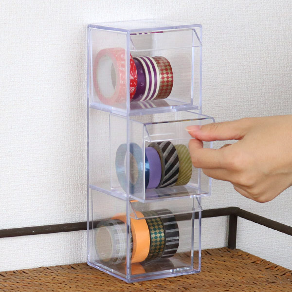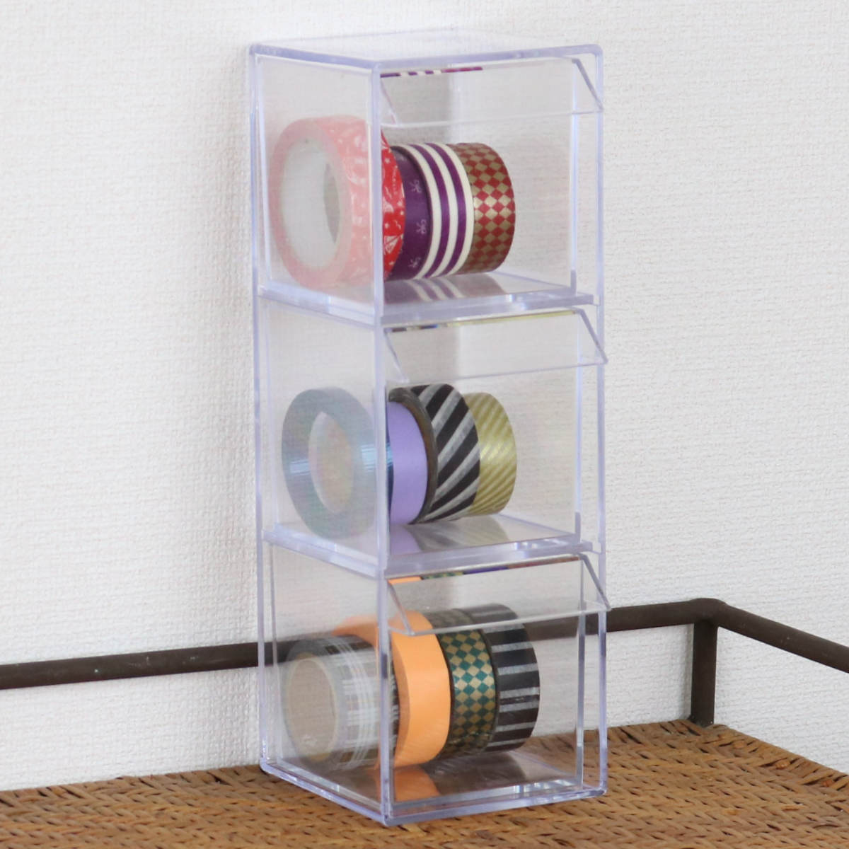 | サイズ | 外寸:約 幅24×奥行9.6×高さ8.3(cm) 内寸:約 幅6.6×奥行6.7×高さ7.2(cm) ※内寸は引出し1個あたりのサイズ |