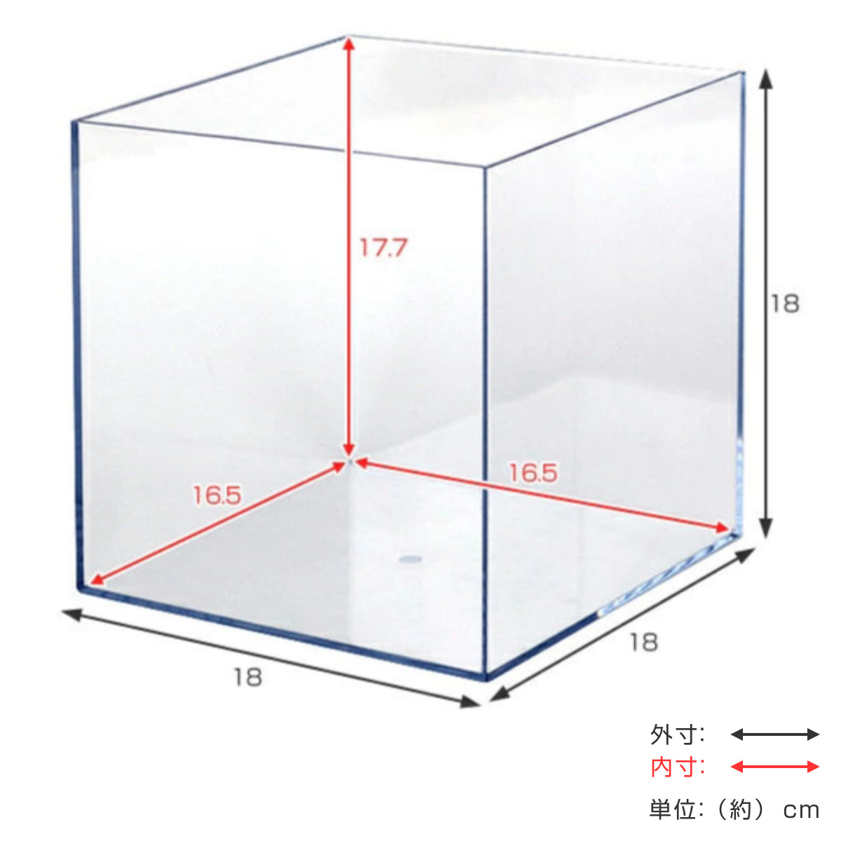 | サイズ | 外寸:約 幅18×奥行18×高さ18(cm) 内寸:約 幅16.5×奥行16.5×高さ17.7(cm) |