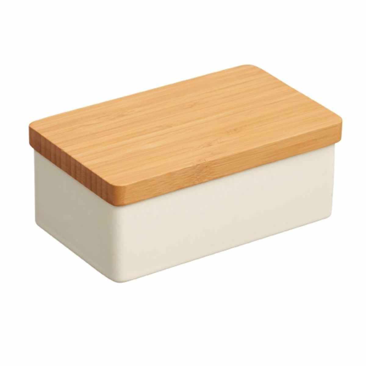 シンプルでどんな食卓にも馴染みやすいバターケースです。200gのバターがきれいに収まります。ミニマムでシャープなフォルムは、味わいのある竹と磁器の素材を用いることで日常のテーブルシーンに調和をもたらします。