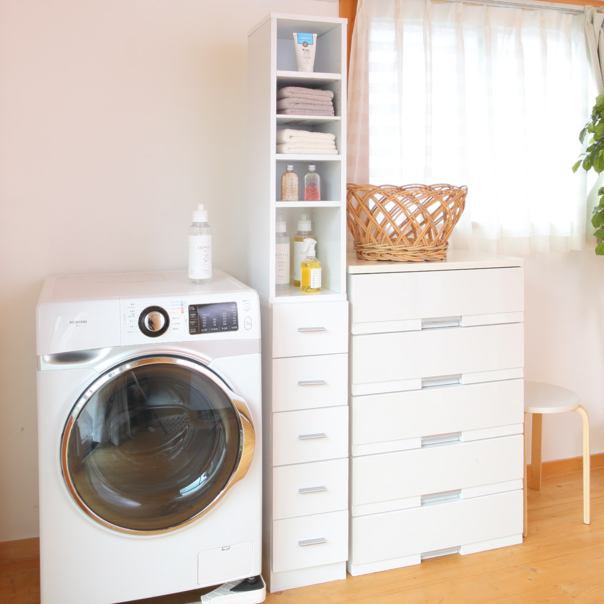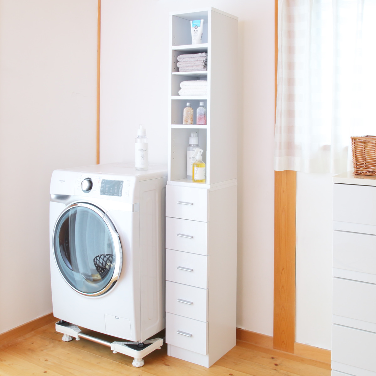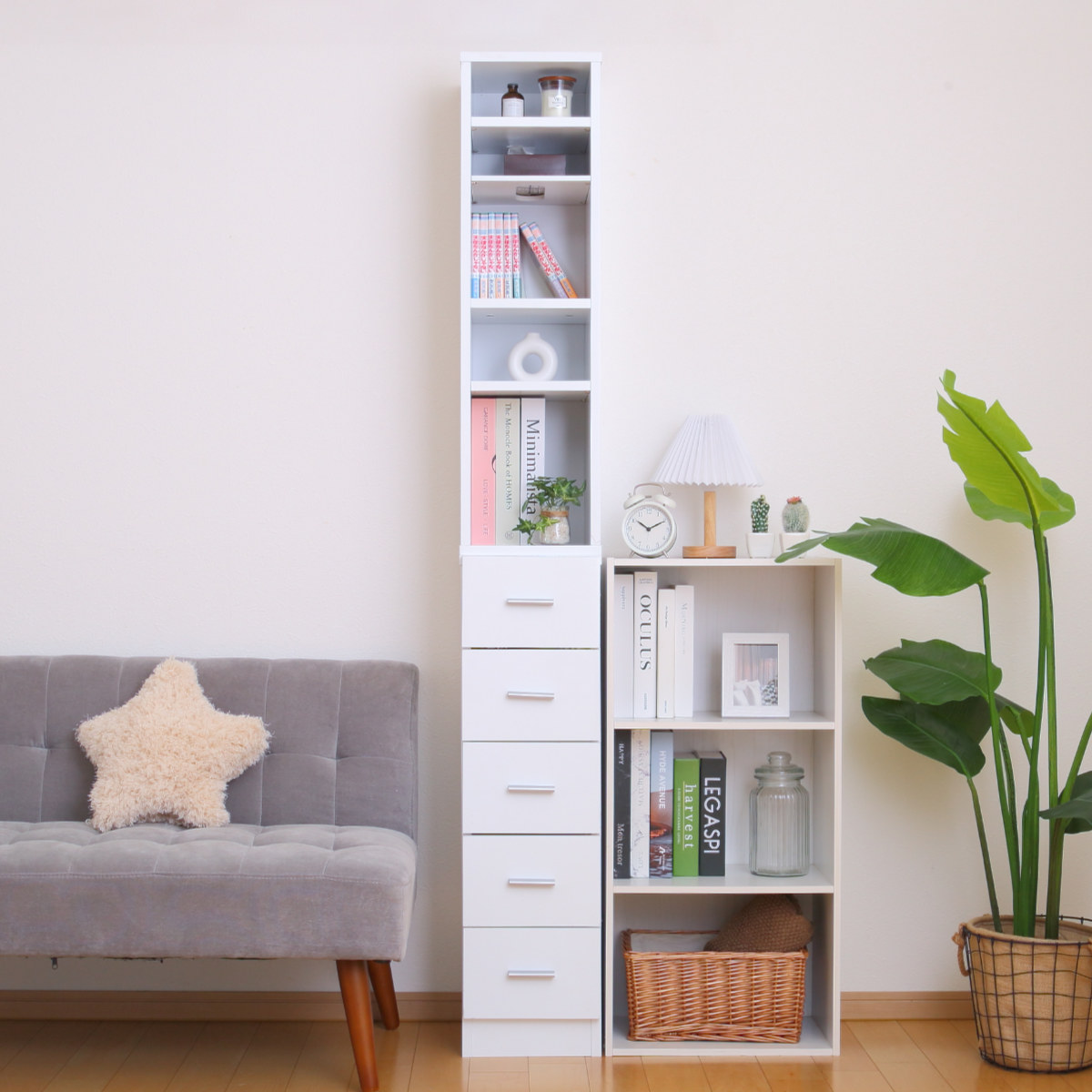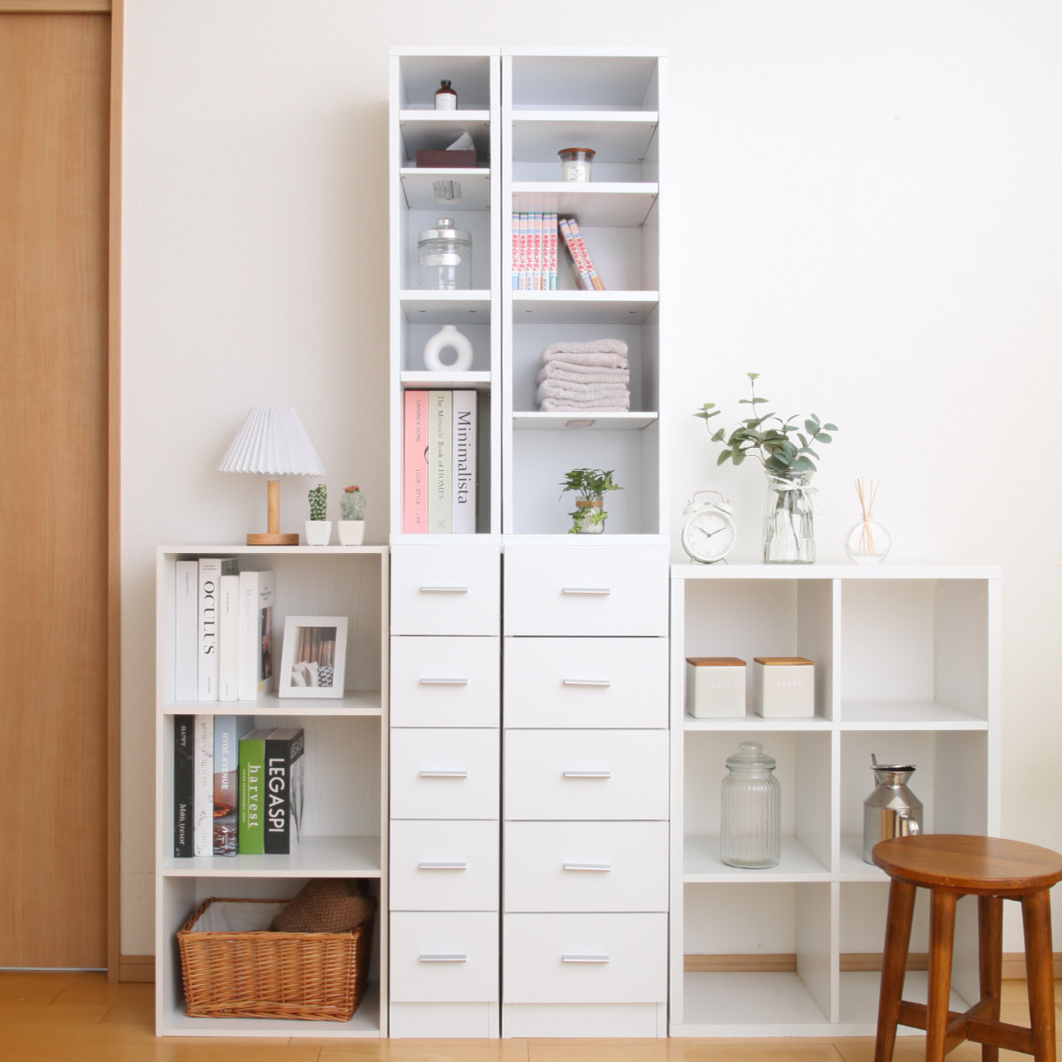 同じシリーズの幅違いで組み合わせると、もっと便利にお使いいただけます。清潔感のあるホワイトカラーで、複数台置いても圧迫感を感じにくいです。