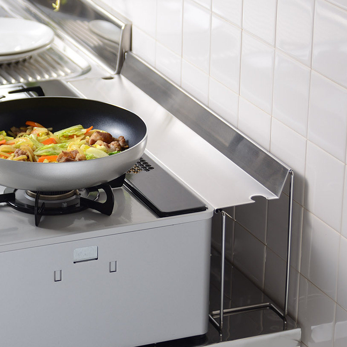 コンロ奥の隙間に落ちる油はねや調理汚れをガードしてくれるラックです。掃除しにくいスペースにほこりや汚れがたまらず、お手入れが楽になります。スリムなサイズで隙間に収まるので、お手持ちのコンロの位置を変えることなく設置が可能です。