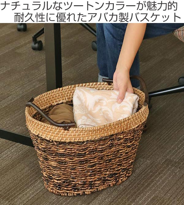 バスケット アバカ 収納 幅42×奥行34×高さ33cm ラタン 籐 かご 持ち手付き ( 北欧 カゴ ツートン 収納バスケット リビング 収納かご 収納ボックス 角型 タオル リビング収納 ランドリー収納 ランドリー おしゃれ )