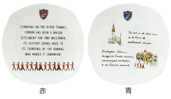 白地にアルファベットや近衛兵、宮殿の絵柄が可愛らしいプレートです。
