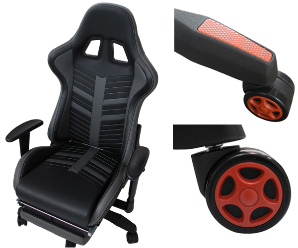 レーシングカーを思わせる機能なハイバックデスクチェアレーシングカーの座席のようなデザインが特徴の多彩な機能を施したデスクチェアです。疲れを軽減してくれる様々な工夫がなされており、細部のデザインレーシングカーを思わせるこだわった仕様になっております。