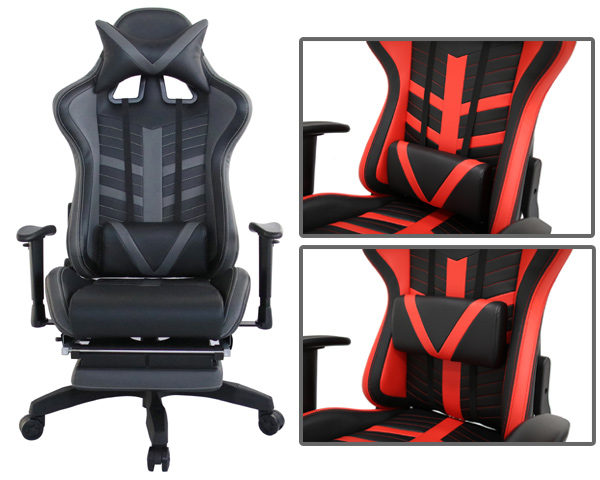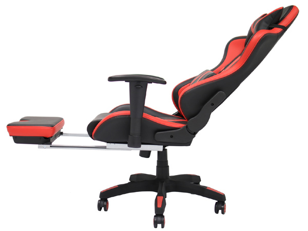 オフィスチェア 椅子 収納式オットマン レーシングチェアー Monza ( チェア チェアー イス オフィス リクライニング オットマン かっこいい おしゃれ クッション付き 疲れにくい サポート付き リラックス ) 【 レッド 】