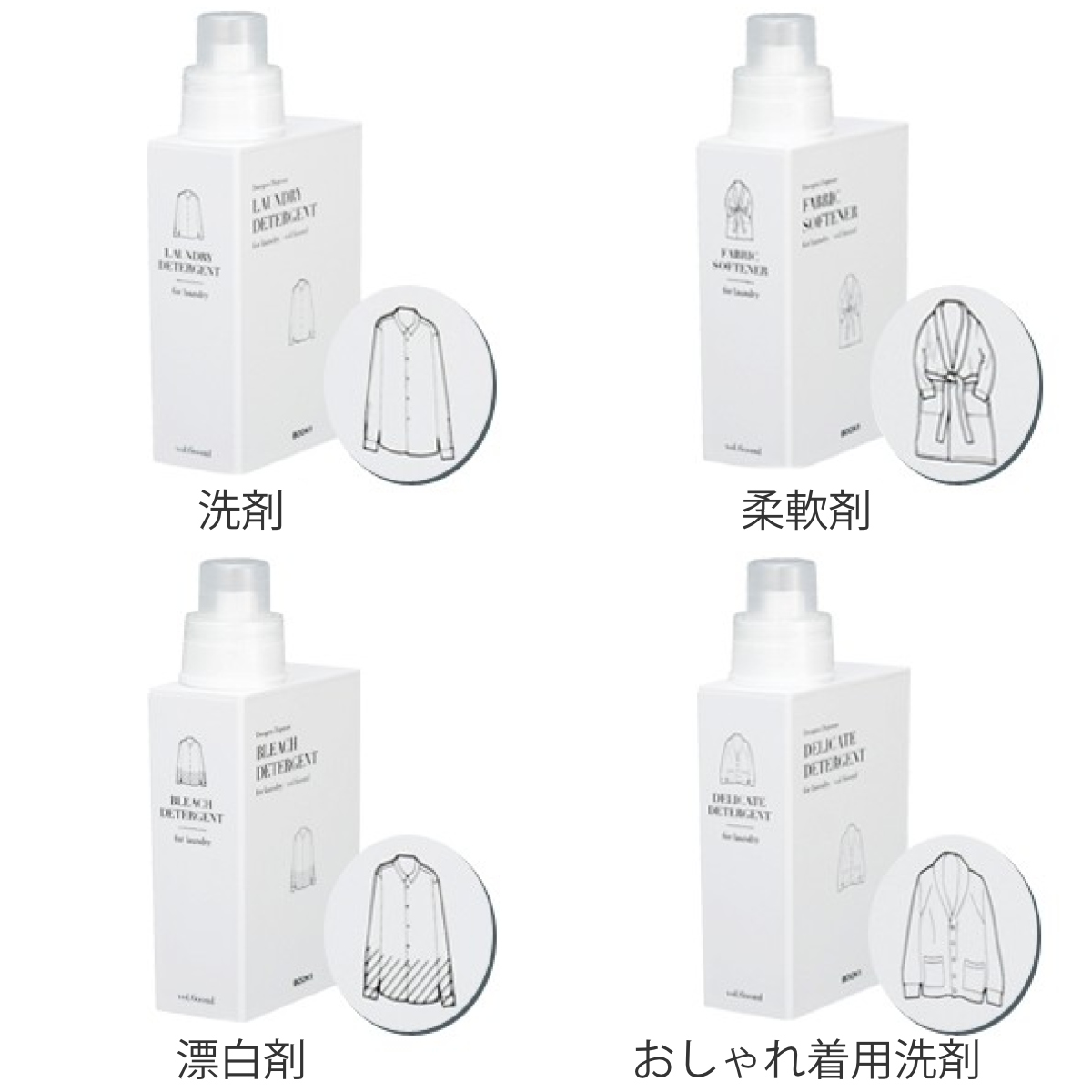 | 種類 | 洗剤、柔軟剤、漂白剤、おしゃれ着用洗剤 |