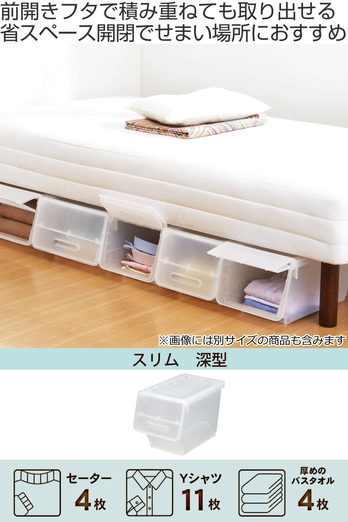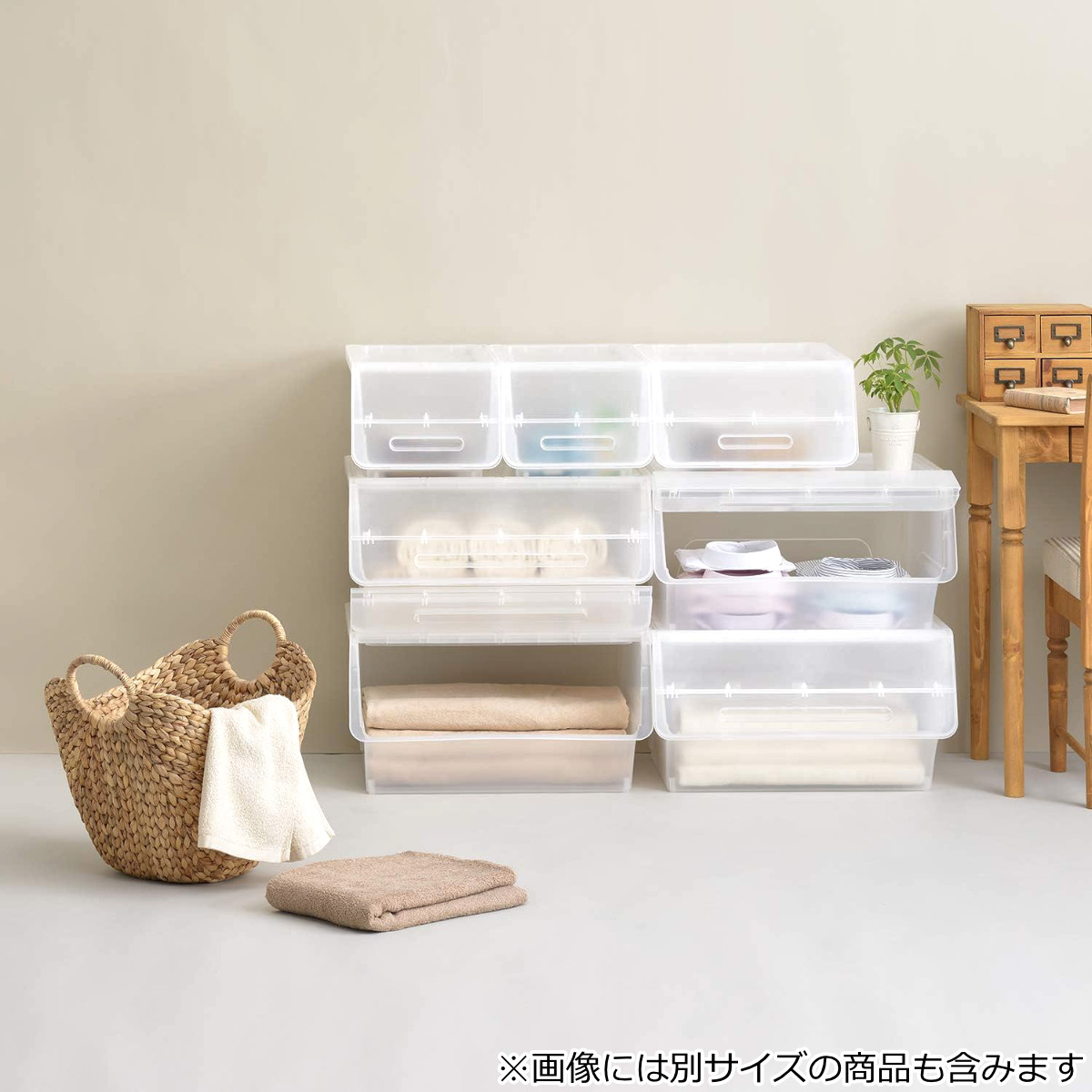 収納ボックス 前開き ナチュラ フロック 30 スリム 深型 幅29×奥行46×高さ31cm 4段階ストッパー ( 収納ケース 収納 おもちゃ箱 衣類収納 扉付き 積み重ね スタックボックス ストッカー 衣装ケース 日本製 クローゼット キッチン )