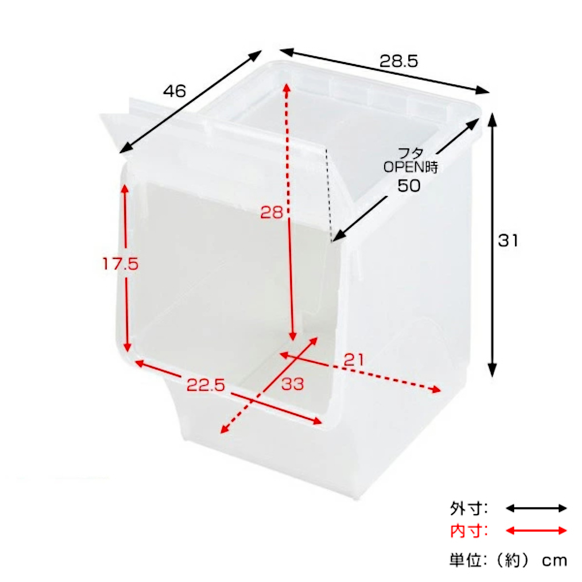 | サイズ | 外寸:約 幅28.5×奥行46×高さ31(cm) 内寸:約 幅21×奥行33×高さ28(cm) 間口:幅22.5×高さ17.5(cm) |