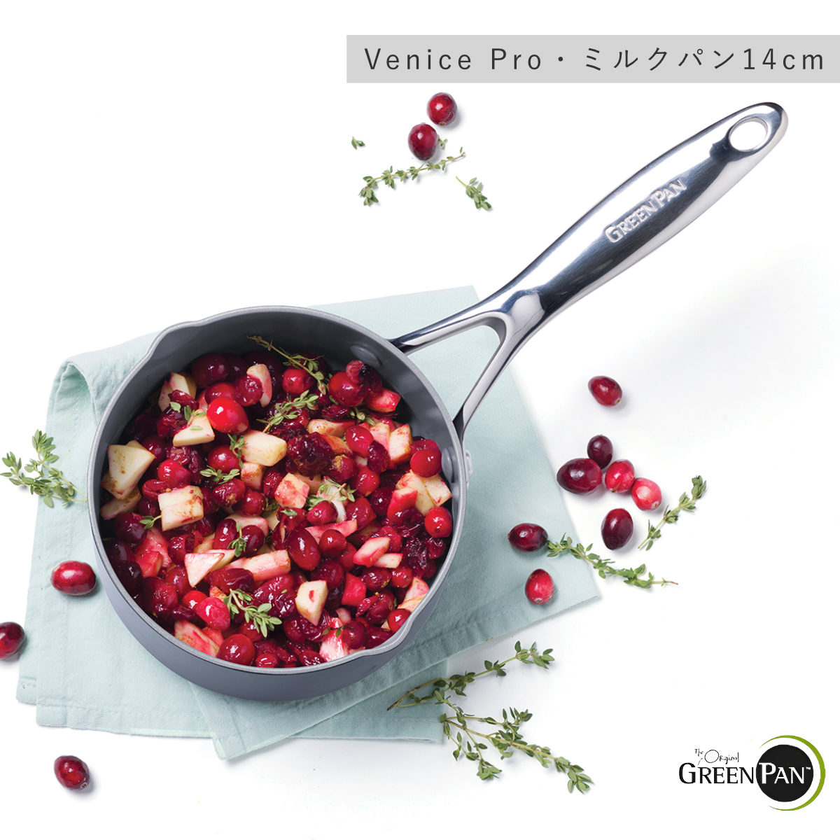 GREEN PAN 片手鍋 14cm IH対応 ヴェニスプロ ミルクパン ( ガス火対応 グリーンパン ソースパン 小鍋 片手なべ 両口鍋 小ぶり 軽い 14センチ アルミ製 マグニート加工 ノンスティック加工 軽量 おしゃれ )