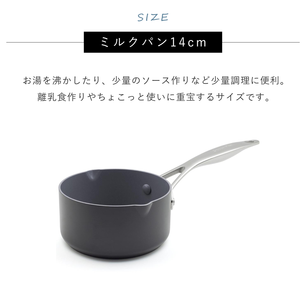 ![]() ミルクパン 14cm 【▲このページの商品】 | ![]() ソースパン 18cm | ![]() キャセロール 20cm |