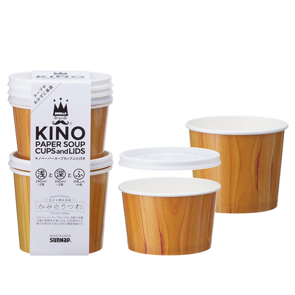 紙カップ キノペーパースープカップ 209ml×2個 390ml×2個 ( スープカップ 使い捨て おしゃれ フタ付き カップ 使い捨てカップ 使い捨て容器 入れ物 蓋 ふた BBQ アウトドア )