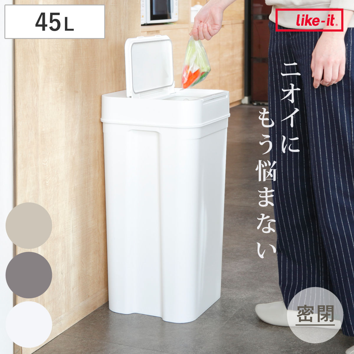 Seals(シールズ)の密閉シリーズは、9.5L・25L・45Lの3サイズ展開。設置場所や用途に合わせて選べるので、キッチンやリビングでも使いやすく、シリーズで揃えれば統一感のある空間に。サイズ違いで使い分けることで、分別もすっきり行えます。