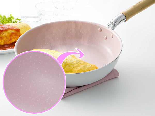 ●ピンクマーブルコーティングが施されており、こびり付きにくく汚れもするんと落とせます。