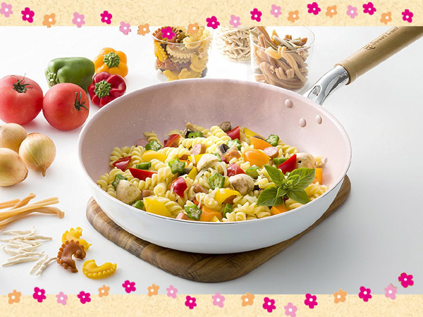 ●ピンクコーティングとスノーホワイトがオシャレなフライパンです。