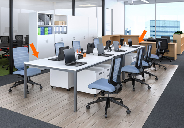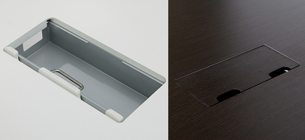●天板中央には配線ボックスが付きで、PCを使う会議の際に役立ちます。