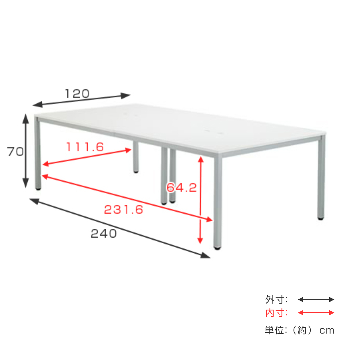 ミーティングテーブル 幅240cm オフィステーブル 配線ボックス付き ( 法人限定 テーブル シンプル ベーシック デスク オフィス 会社 配線 ワークデスク ワークテーブル オフィス家具 事務机 事務用 ) 【ダークブラウン】