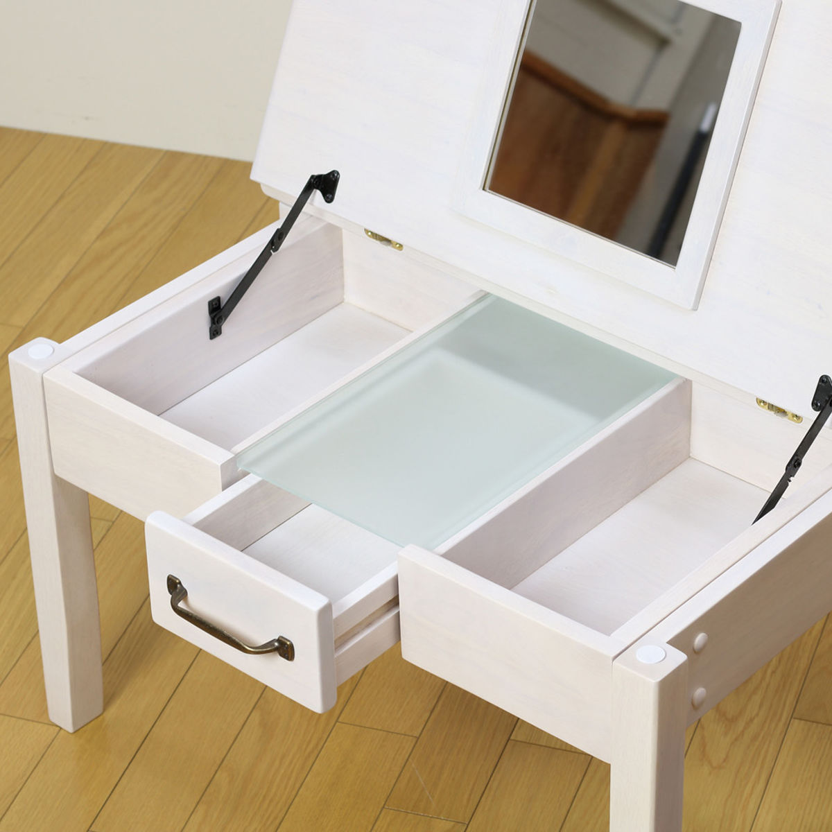 空間を彩るキュートなドレッサーテーブル。様々なスタイルのお部屋に合うシンプルデザイン。天板を開けばドレッサーに、天板を閉じればテーブルになります。収納スペースもばっちり確保された設計です。