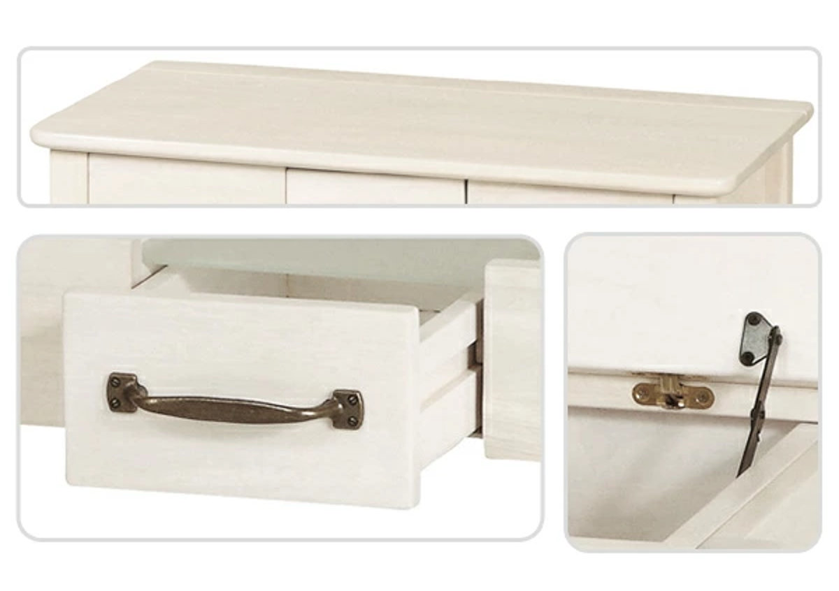 カントリー&アンティーク調のエッセンスを取り入れた白いファニチャーシリーズです。フェミニンで日々の生活が華やかになるようなドレッサーテーブルです。
