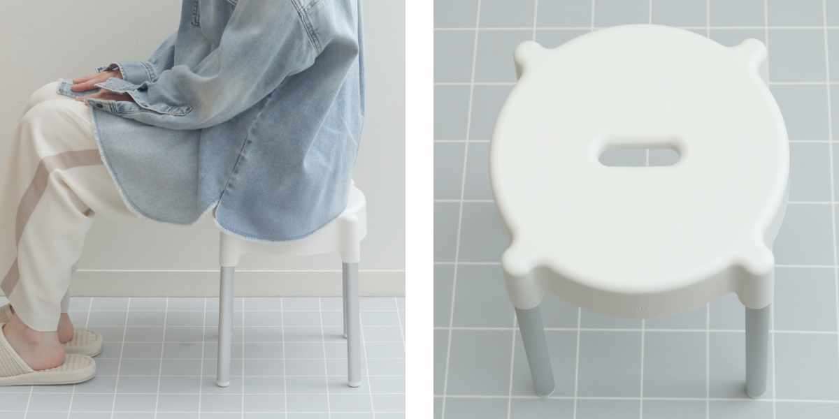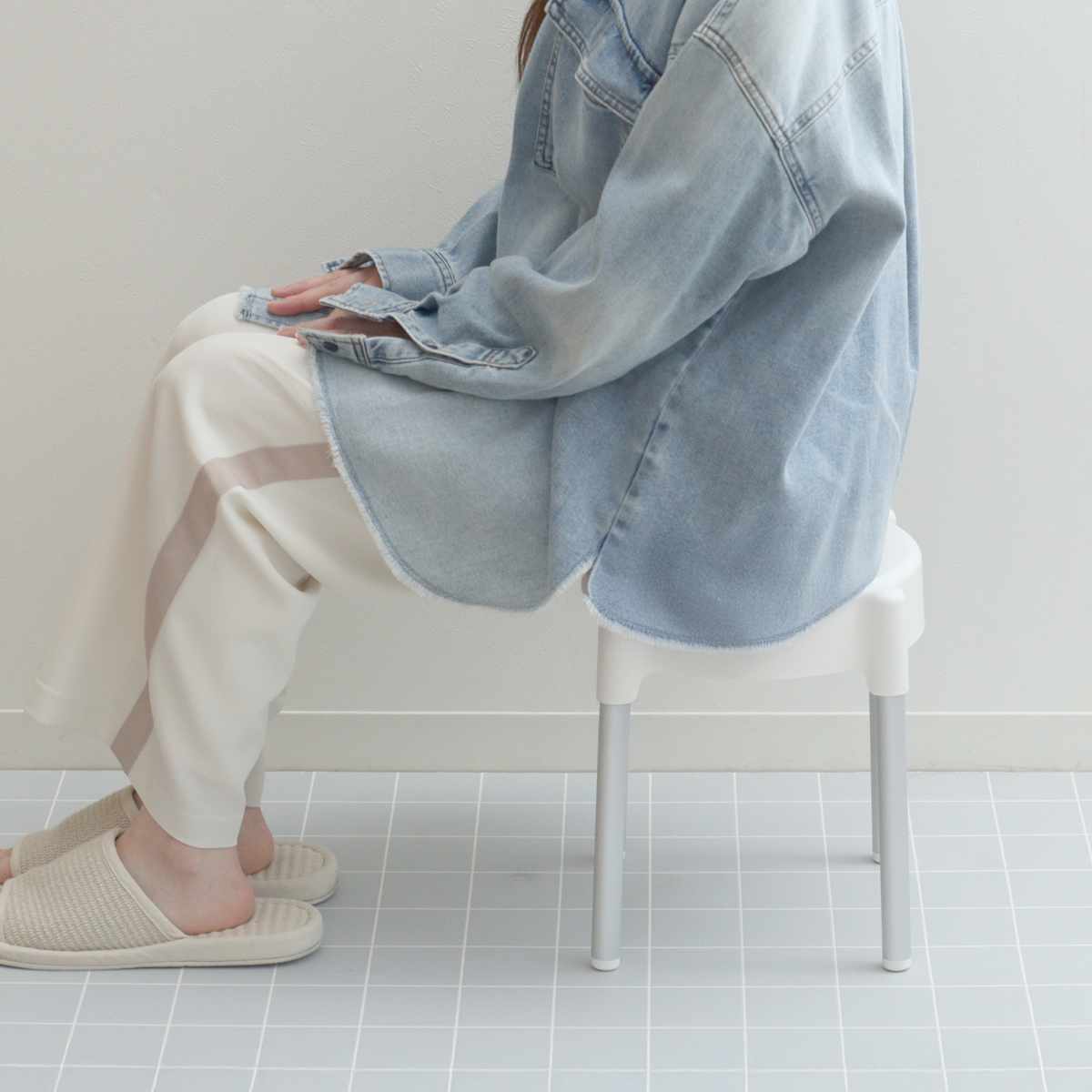 シンプルなデザインとホワイトカラーでどんな浴室でもスッキリと清潔感のある空間にまとまります。湯おけなどを床置きする方、バスカウンターを利用する方どちらにもちょうど良い座面の高さとなっております。