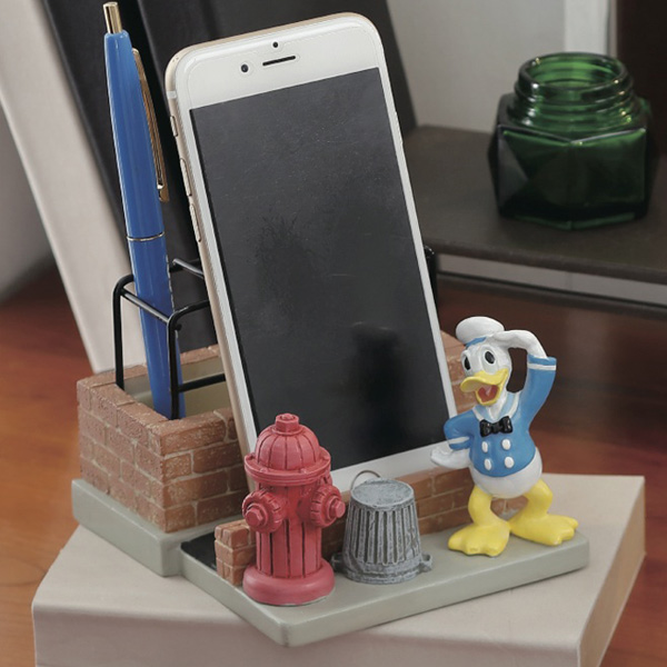 クラシックヴィンテージシリーズのドナルドのマルチスタンドです。元気に挨拶してくれているようなドナルドの笑顔に癒されます。ペンやメモ、スマートフォンなどデスク周りの小物の収納に便利です。