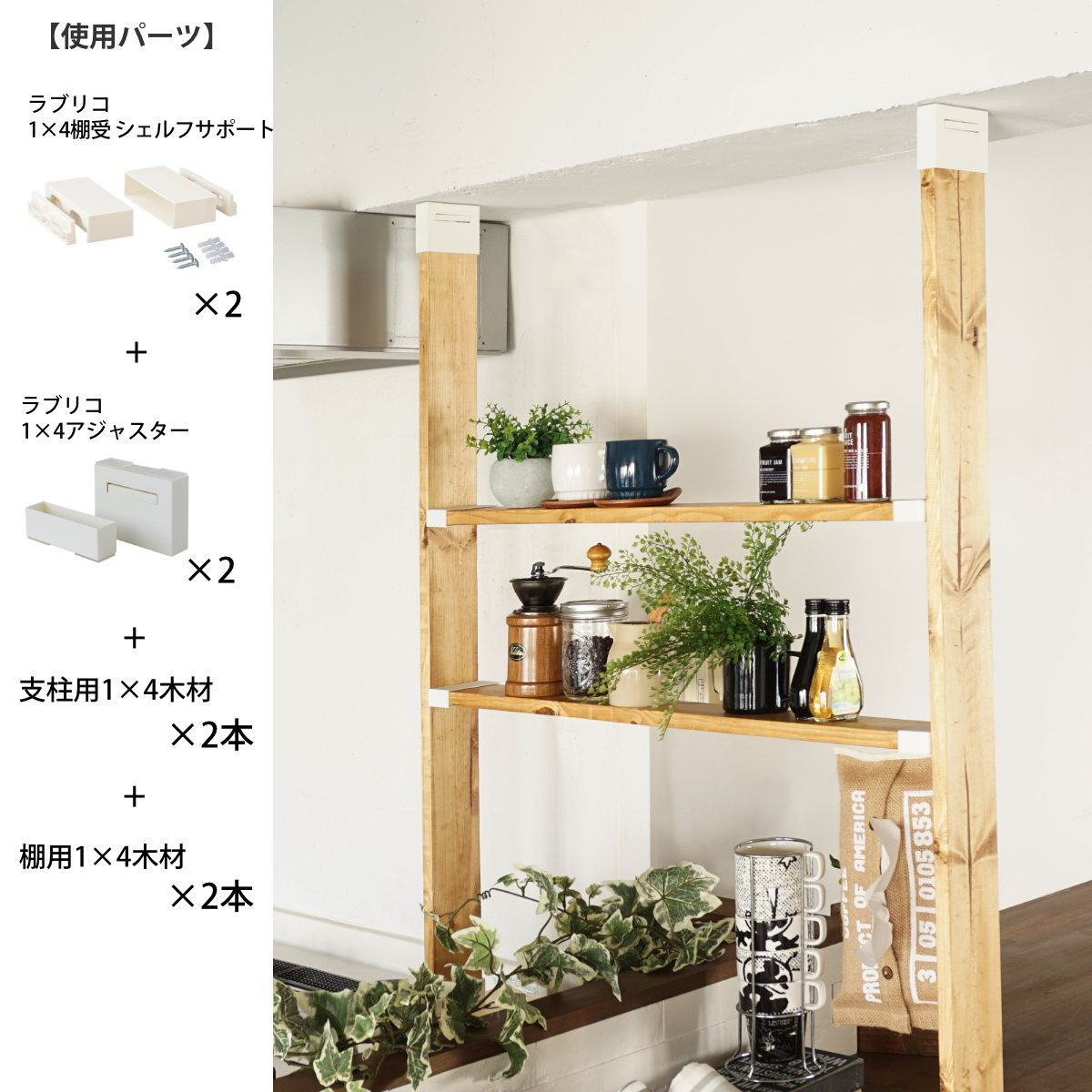 棚受 LABRICO ラブリコ DIY パーツ 1×4材 棚 ラック 同色1セット ( 部品 突っ張り つっぱり 壁 収納 壁面収納 賃貸 簡単取付 シェルフ 壁面 パーテーション ウォールシェルフ ウォールラック 見せる収納 おしゃれ ) 【オフホワイト】
