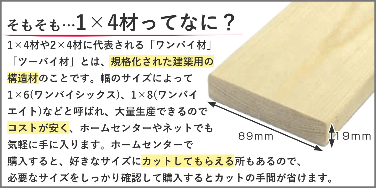※できるだけ反りやねじれの少ない1×4材をご使用いただく事をお勧めいたします。