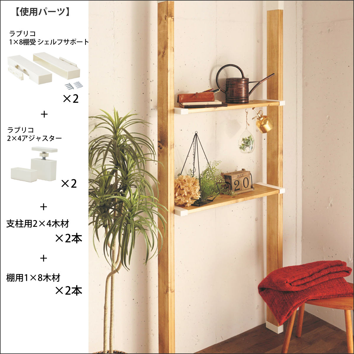 「LABRICO(ラブリコ)シリーズ」は特別な技術がなくても、安全で簡単に楽しめるDIY収納パーツです。ホームセンターで必要な木材を買ってパーツを組み合わせれば、柱や棚が作れます。安心・安全に配慮した商品設計で、壁や床を大きく傷つけず、住まいに合わせた自由なサイズで設置が可能です。DIYを経験したことがない方から経験豊富な方まで、多くの方が利用できます。