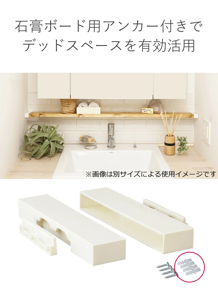 石膏ボードアンカーが付属しているので、木材だけでなく石膏ボードの壁面にもDIYで簡単に突っ張り棚を設置できます。