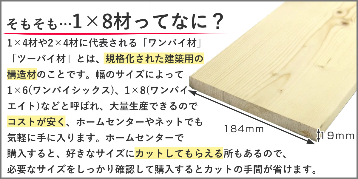 ※できるだけ反りやねじれの少ない1×8材をご使用いただく事をお勧めいたします。