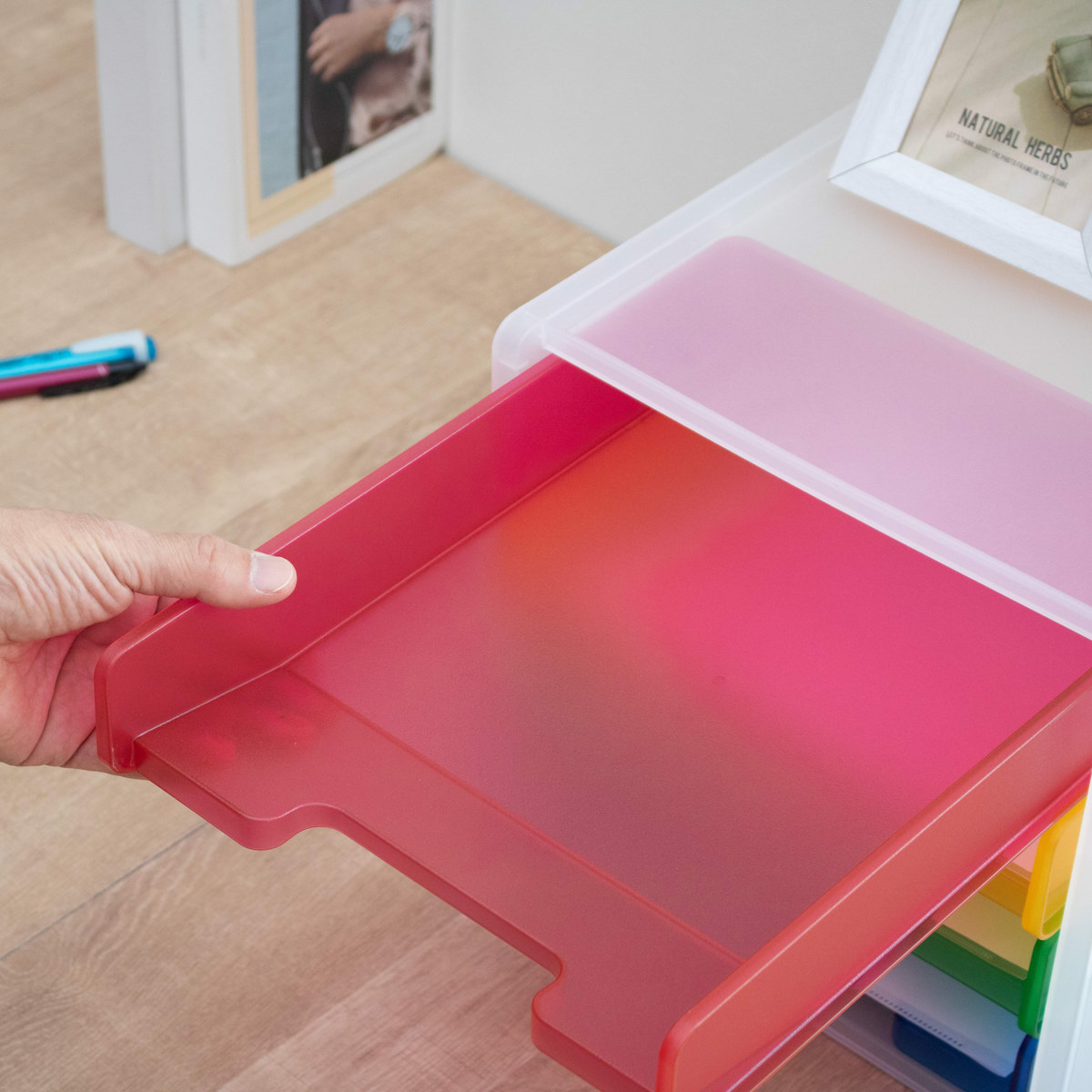 カラフルなトレーで分類収納にも便利