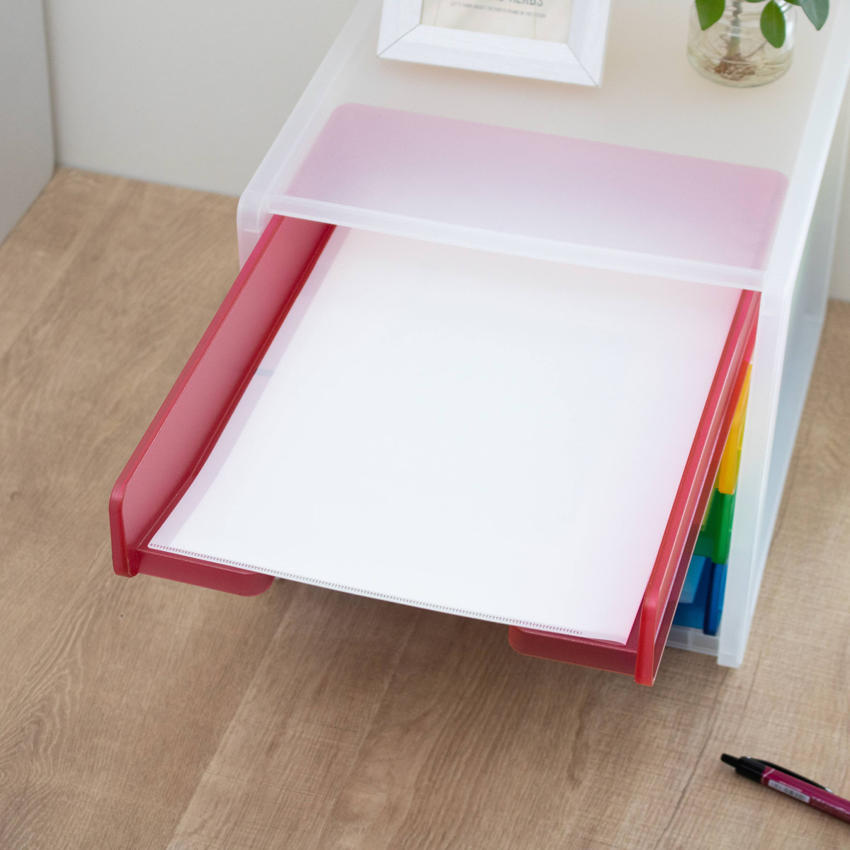 関連キーワード:引出し カラフル 色分け 分類 分別 分けて収納 リビング 棚上 子ども 子ども部屋 子供部屋 プリント プリント収納 宿題 課題 学校 習い事 学習 机 つくえ デスク デスク周り デスク収納 整頓 習慣付け 定位置 定位置化 便利 おすすめ オススメ 積み重ね スタッキング 幅 27.5 奥行 34 高さ 26 トレーサイズ 24.5 33 5.5 cm