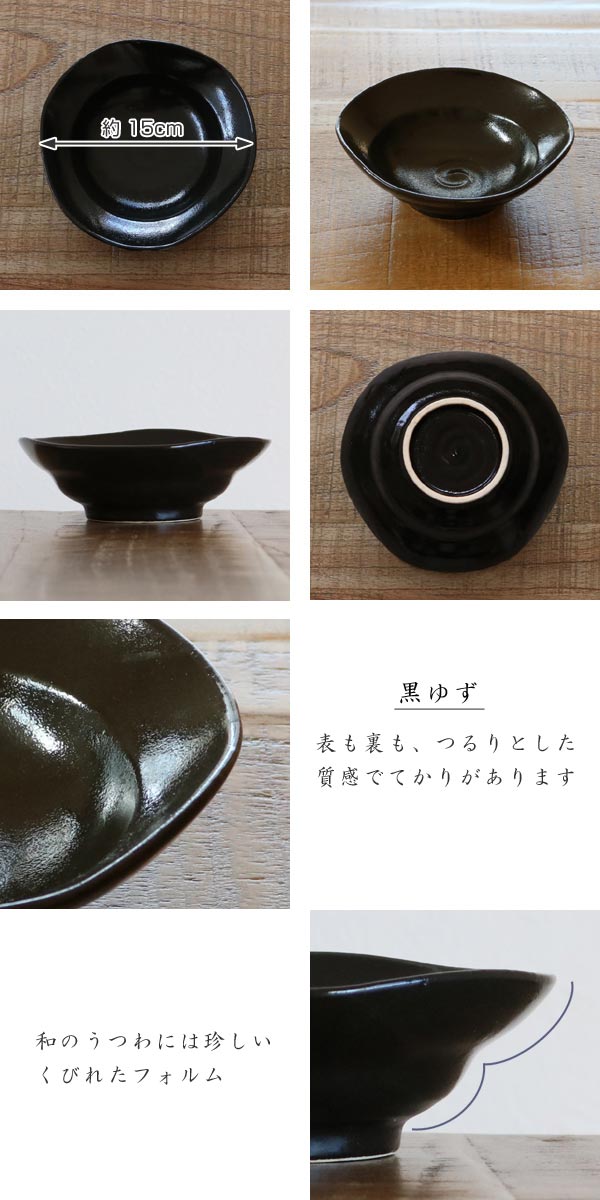 なぶり浅鉢 和食器 黒ゆず 変形皿シリーズ 美濃焼 日本製 陶器 同柄5個セット ( 食器 皿 和皿 食洗機対応 和風 電子レンジ対応 丸鉢 おしゃれ 黒和モダン 和 器 小皿 小鉢 中皿 中鉢 )
