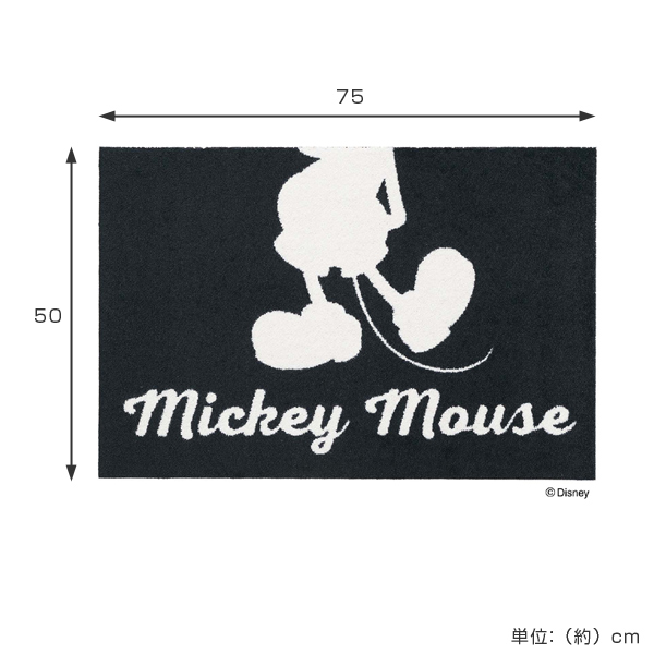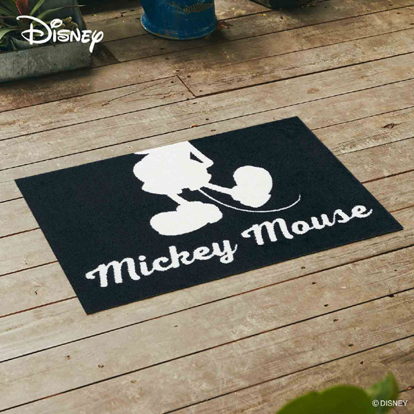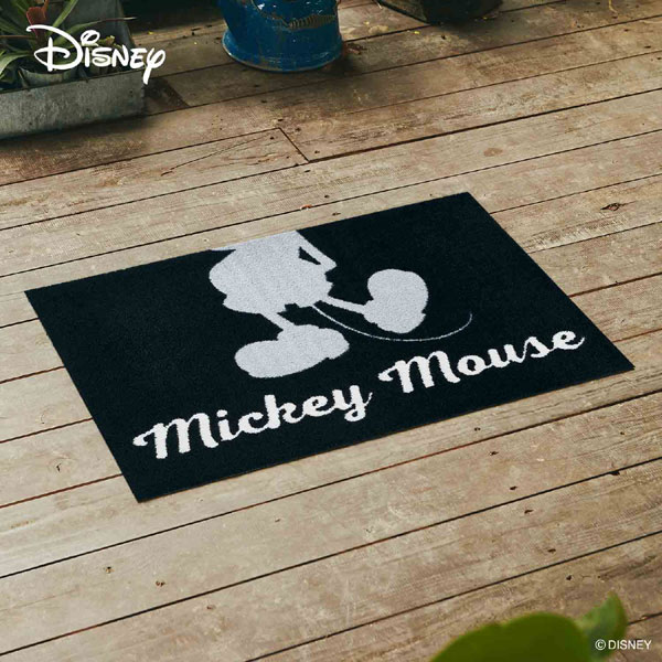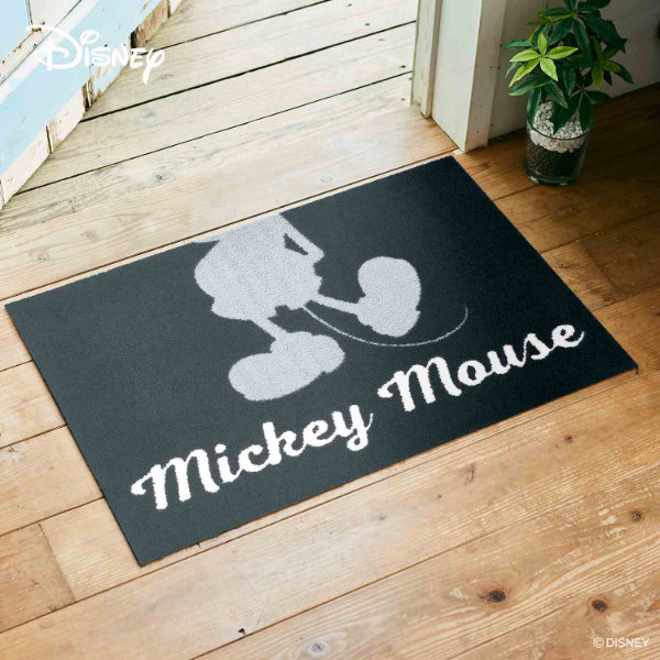 ミッキーのシルエットをプリントした、シンプルでお洒落なデザインの玄関マットです。モノトーンのハイセンスなインテリアによく合います。玄関マットとしてはもちろん、お部屋のラグとしてもお使いいただけます。