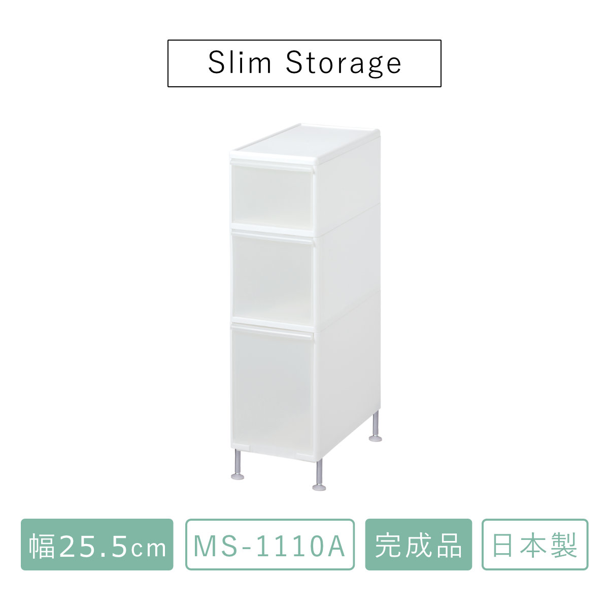 キッチンストッカー 幅25.5cm 3段 アジャスター付 スリムストレージ MS-1110A ( キッチン収納 隙間収納 収納ストッカー スリム ストッカー キッチンラック スリムストッカー すき間収納 洗面所 脱衣所 プラスチック製 )