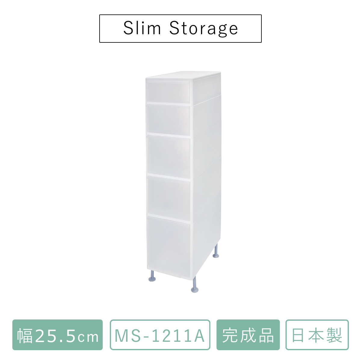 キッチンストッカー 幅25.5cm 5段 アジャスター付 スリムストレージ MS-1211A ( キッチン収納 隙間収納 収納ストッカー スリム ストッカー キッチンラック スリムストッカー すき間収納 洗面所 脱衣所 プラスチック製 )
