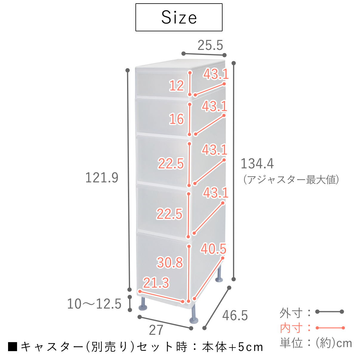 | 材質 | 本体・引き出し:ポリプロピレン アジャスター:ポリプロピレン、スチール |