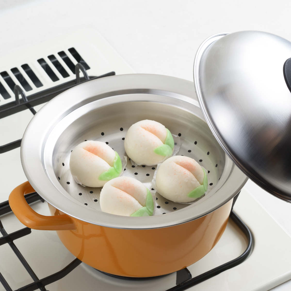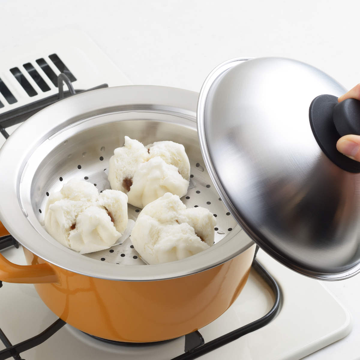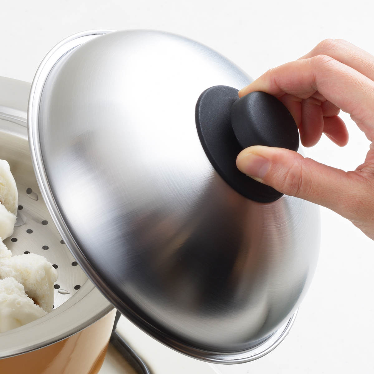 ドーム型の蓋はしっかり加熱蒸気が対流し、ムラなくふっくら蒸しあがります。高さがあるので、茶碗蒸しや大きな肉まんを温める時に便利です。