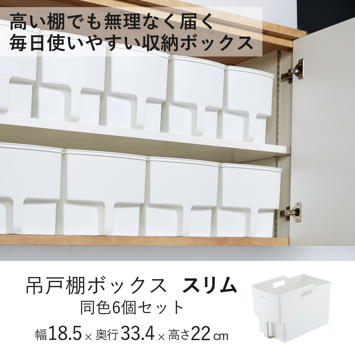 キッチン収納ケース 吊り戸棚ボックススリム 幅18.5cm 6個セット ( キッチンストッカー スリム 取っ手付き 吊戸棚 ケース 吊戸棚ボックス 吊戸棚収納 吊り戸棚ストッカー戸棚収納 収納BOX 吊り戸棚 キッチン 収納 整理ケース ) 【ホワイト】