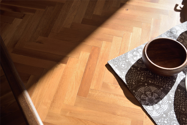ヘリンボーンはフローリングにも用いられ、レトロな空間やワンランク上の空間にはもってこいの人気の高い柄です。